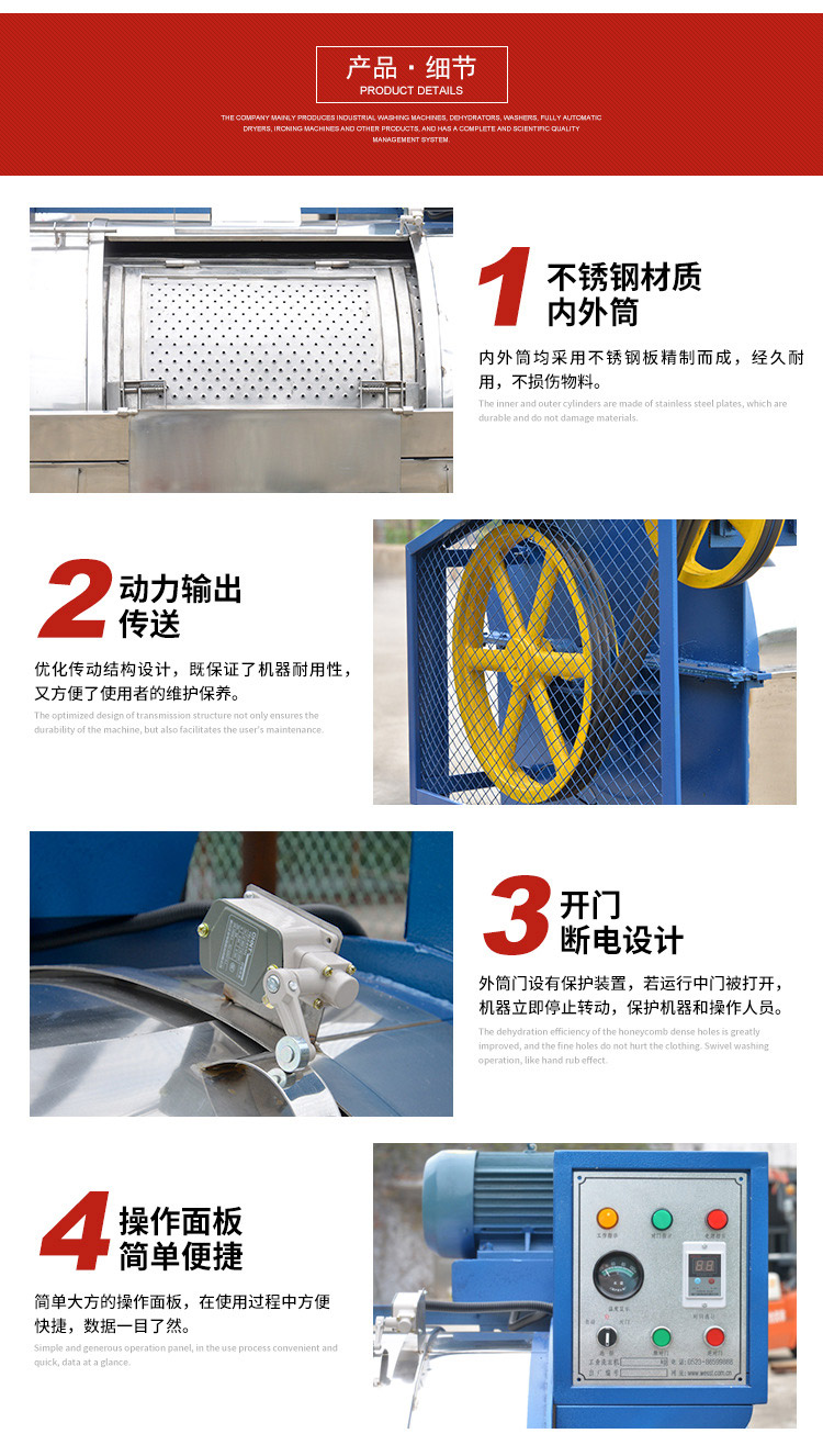 我公司專注于工業(yè)洗衣機(jī),脫水機(jī),水洗機(jī)等洗滌設(shè)備的生產(chǎn),同時(shí)我司為特殊用戶訂制非標(biāo)洗滌機(jī)械。熱忱歡迎廣大客戶來(lái)電咨詢產(chǎn)品信息。